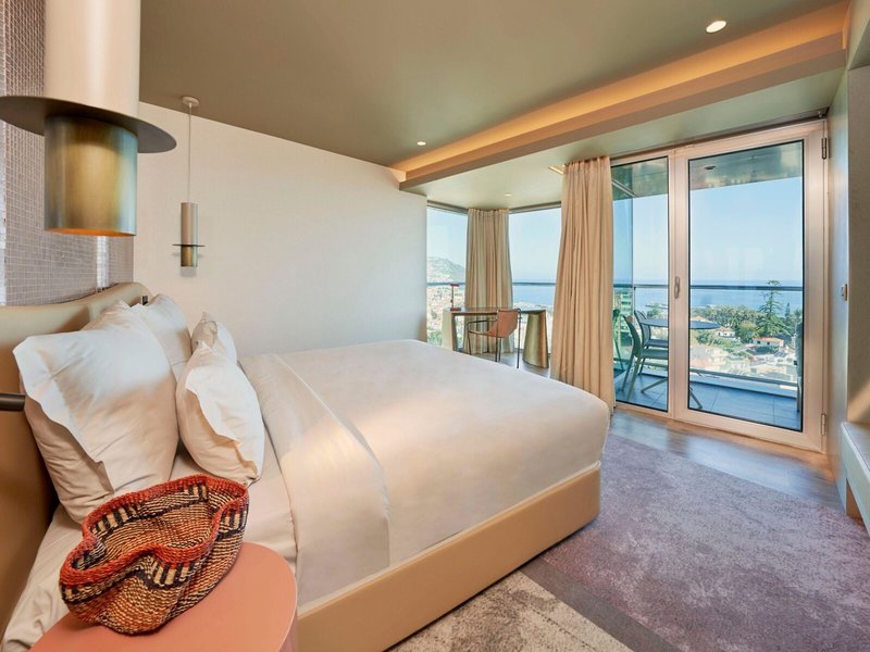 - Deluxe s výhľadom na more (DZM2), Dvojlôžková izba, Nefajčiarska izba, Minimálny vek v izbe: 18 rokov, v hlavnej budove, Výhľad na more, cca 23 m², naposledy kompletne zrekonštruovaná v roku 2022, Celkový počet izieb v tomto type izby: 1, Rozloženie: 1 spálňa, 1 manželská posteľ, Klimatizácia: bezplatne, individuálne ovládaná, studená, teplá, Podlaha: dlažba, Trezor: za poplatok, Minibar: za poplatok, Nealkoholické nápoje: za poplatok, Voda: za poplatok, Alkoholické nápoje: za poplatok, Občerstvenie: za poplatok, Dopĺňanie minibaru: denne, Telefón, Internet: WLAN/WiFi: zadarmo, Televízor: Plochá obrazovka, Satelitná TV, Rádio, Upratovacia služba: denne, bezplatne, Sprcha, WC, Fén, Balkón: s posedením