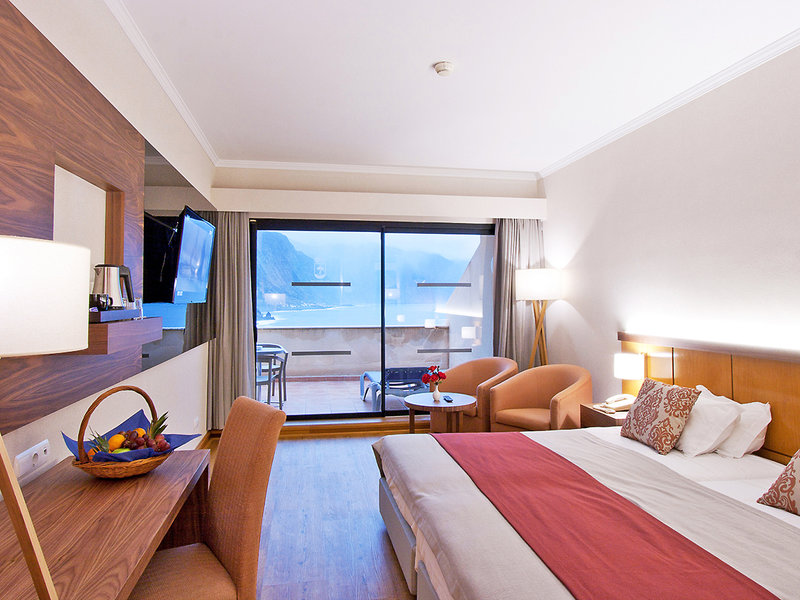 Premium-Doppelzimmer (DZP, ca. 25 qm), modern und ansprechend eingerichtet, Klimaanlage, Minibar, TV, Telefon, WLAN (ab 01.11.25), Safe (erst ab 01.11.25 kostenfrei). Bad, WC, Föhn. Balkon mit Meerblick. Max. 3E