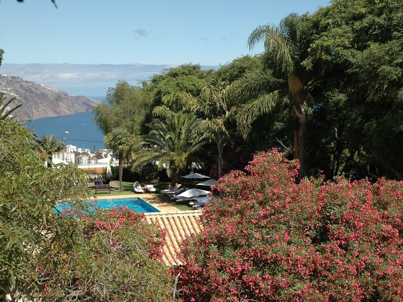 Lage & Umgebung Das luxuriöse Charmehotel in Panoramalage, mit fantastischem Blick auf die Bucht von Funchal, befindet sich ungefähr 3 km vom belebten Stadtzentrum entfernt (wochentags kostenloser Shuttle-Service). Die nächste Anbindung an die öffentlichen Verkehrsmittel erreichen Sie bequem zu Fuß (etwa 500 m) und den nächsten Strand nach etwa 2 km. Die Transferzeit zum Flughafen Funchal beträgt nur ca. 30 Minuten.