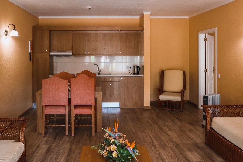 Ausstattung: Die wunderschöne Adults-friendly Anlage (ab 13 Jahre) besteht aus einem historischen Herrenhaus (Quinta), das mit viel Liebe zum Detail restauriert und umgestaltet wurde, sowie aus mehreren flachen Wohngebäuden, die in den Botanischen Garten eingebettet sind. Das Hotel mit insgesamt 166 Wohneinheiten (80 Studios, 41 Appartements, 20 Doppelzimmer und 25 Spa-Suiten) verfügt über eine Rezeption mit Gäste-PC (freier Internetzugang), Wi-Fi (im gesamten Hotel kostenlos), das Hauptrestaurant "Galeria" (Buffet- und à-la-carte), Gourmetrestaurant "La Perla" (im historischen Herrenhaus) und "Thai-Lounge" mit asiatischer und thailändischer Fusionsküche. Im Außenbereich befindet sich ein großer Süßwasser-Swimmingpool mit Sonnenterrasse, Pool/Snackbar sowie Liegen und Sonnenschirmen (inklusive).