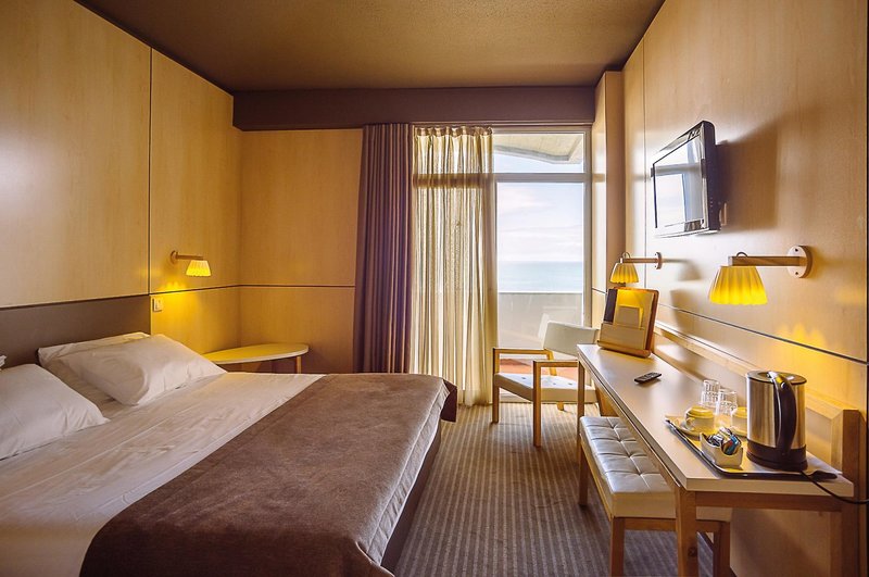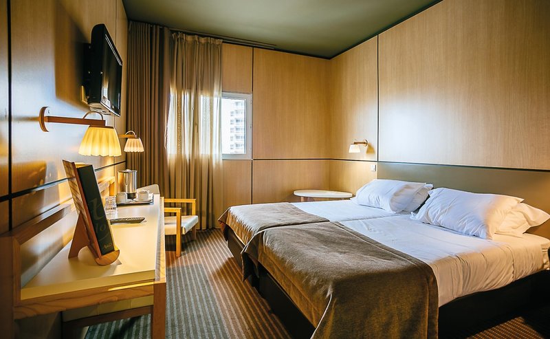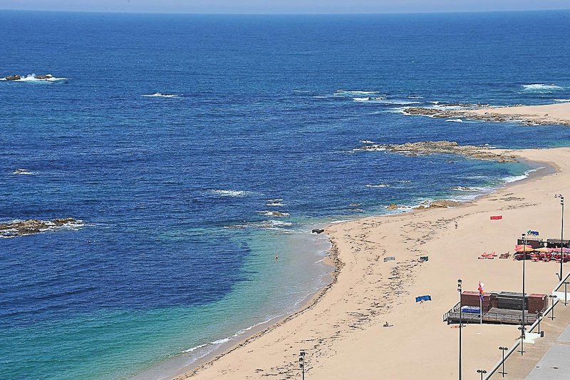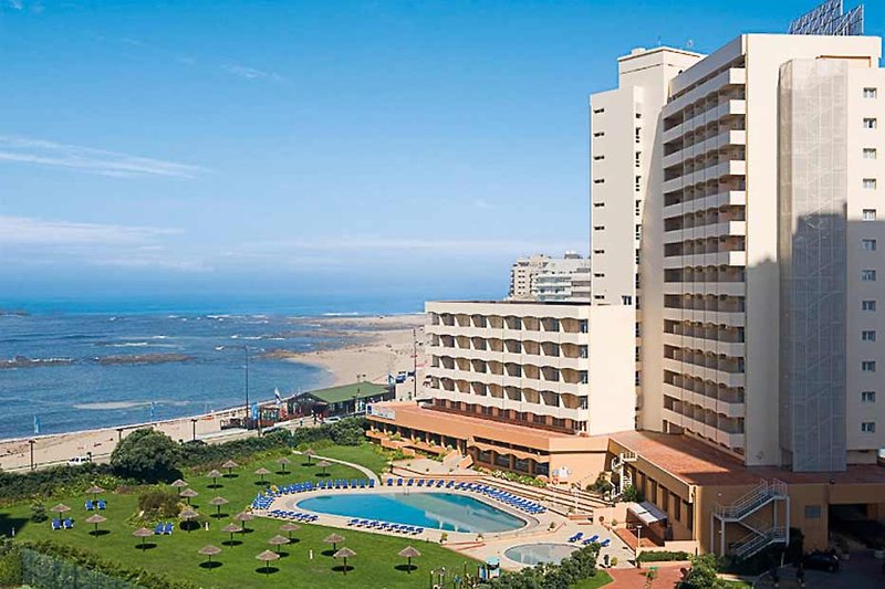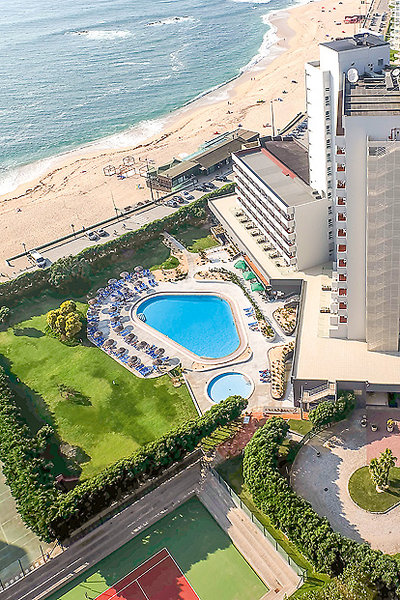 Dieses imposante Hotel aus den 1980er Jahren darf durchaus schon zu den Traditionsadressen für Badeurlaub an der Costa Verde gezählt werden. Freilich mehrfach renoviert, erhebt es sich rund 30 km nördlich von Porto über dem ausgedehnten Sandstrand von Póvoa de Varzim, nur durch eine schmale Uferstraße von diesem getrennt. Die Einkaufs- und Unterhaltungsmöglichkeiten im Zentrum des beliebten Badeorts erreichen Sie binnen weniger Gehminuten. Das Angebot umfasst Restaurant, Bar und Gesellschaftsräume, außerdem eine Gartenanlage mit Swimmingpool und separatem Kinderbecken, Spielplatz und 2 Tennisplätze. Die 208 Zimmer - teils mit herrlichem Meerblick - sind komfortabel-modern ausgestattet.