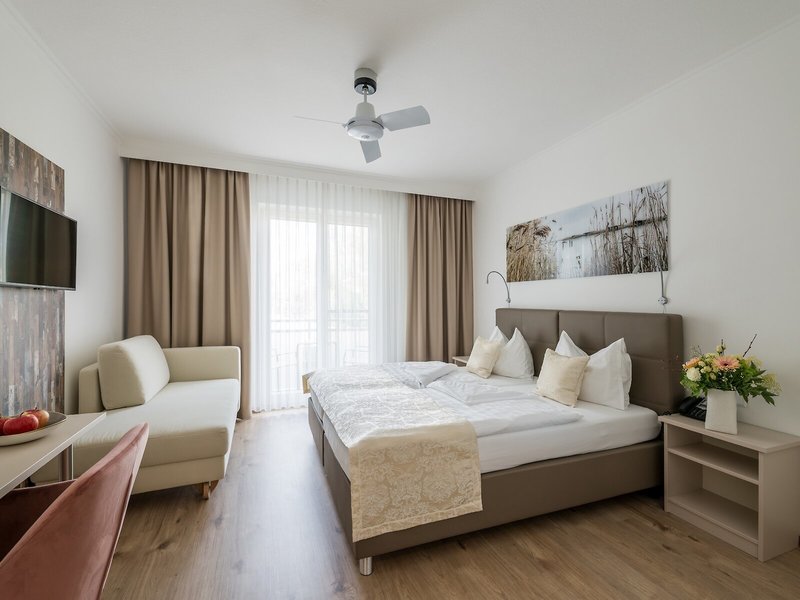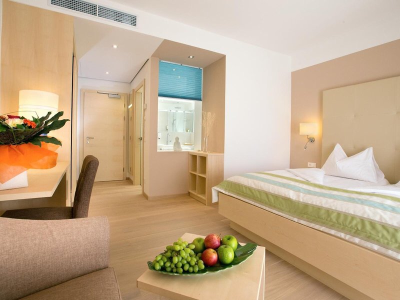Ubytovanie: Izby sú vybavené kúrením a ventilátorom. Hostia si môžu vychutnať výhľad do záhrady z balkóna alebo terasy. Izby majú manželskú posteľ, manželskú posteľ alebo manželskú posteľ. K dispozícii je aj trezor a minibar. Pre optimálne pohodlie je k dispozícii telefón, TV, rádio a WiFi (zdarma). V kúpeľni so sprchovacím kútom a vaňou nájdete sušič vlasov a župany. Hotel ponúka rodinné a nefajčiarske izby.