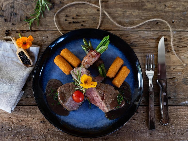 Jedlo a nápoje: Hotel ponúka stravovanie v reštaurácii a bare. K dispozícii je polpenzia. Denne sa podávajú bohaté raňajky formou bufetu a večere. Na požiadanie je k dispozícii diétne a detské menu. Hotel ponúka aj špeciálne cateringové služby.