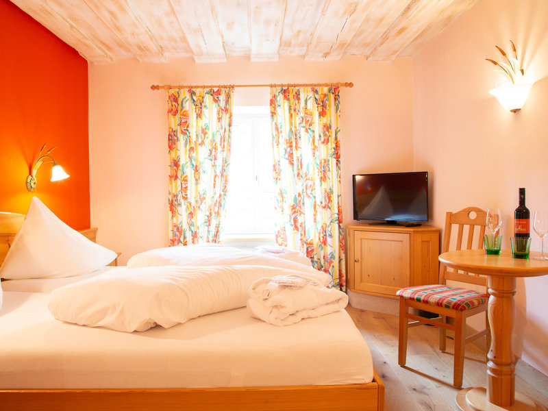 - Dvojlôžková izba classic (DZX1), dvojlôžková izba, nefajčiarska izba, v hlavnej budove, cca 20 - 24 m², posledná čiastočná rekonštrukcia v roku 2017, celkový počet izieb v tomto type izby: 1, rozloženie: 1 spálňa. , 1 manželská posteľ (180x200cm), 1 prístelka, detská postieľka : cca 30 EUR/noc, nutná rezervácia, kúrenie: podľa sezóny, individuálne nastaviteľné, podlaha: parkety, trezor: bez poplatku, minibar: za poplatok, telefón. , Internet: WLAN/WiFi: bez poplatku, televízia: nemecký program, káblová TV, rádio, upratovanie: denne, zdarma, sprcha, WC, župan: zadarmo, papuče: zadarmo, fén, kozmetické zrkadlo