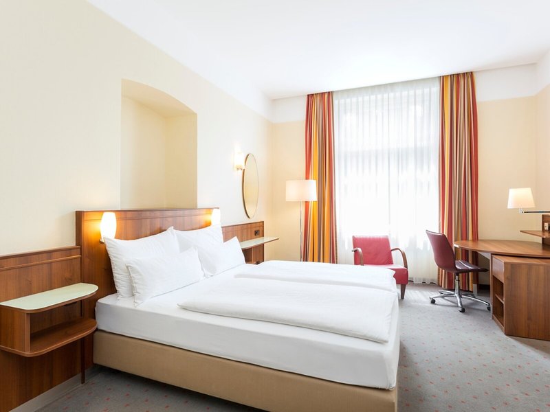 - Standardzimmer (DZX1), Doppelzimmer, Nichtraucherzimmer, Gartenseite, Straßenseite, Gartenblick, Stadtblick, ca. 18 - 23 m², Gesamtanzahl der Räume in diesem Zimmertyp: 1, Aufteilung wie folgt: 1 Schlafzimmer, 1 Doppelbett (160x200cm), Babybett: ohne Gebühr, Anfrage & Reservierung notwendig, Klimaanlage, Heizung, Fußboden: Laminat, Teppichboden, Safe: ohne Gebühr, Schreibtisch, Minibar: gegen Gebühr, Softdrinks: gegen Gebühr, Wasser: gegen Gebühr, Snacks: gegen Gebühr, Minibarauffüllung: 11:00 Uhr - 13:00 Uhr, Telefon, Internet: WLAN/WiFi: ohne Gebühr, Fernseher: Flatscreen, im Schlafzimmer, Roomservice: täglich 07:00 Uhr - 11:00 Uhr, gegen Gebühr, Reinigungsservice, Badewanne oder Dusche, WC, Bademantel: gegen Gebühr, Slipper: gegen Gebühr, Föhn, Kosmetikspiegel
