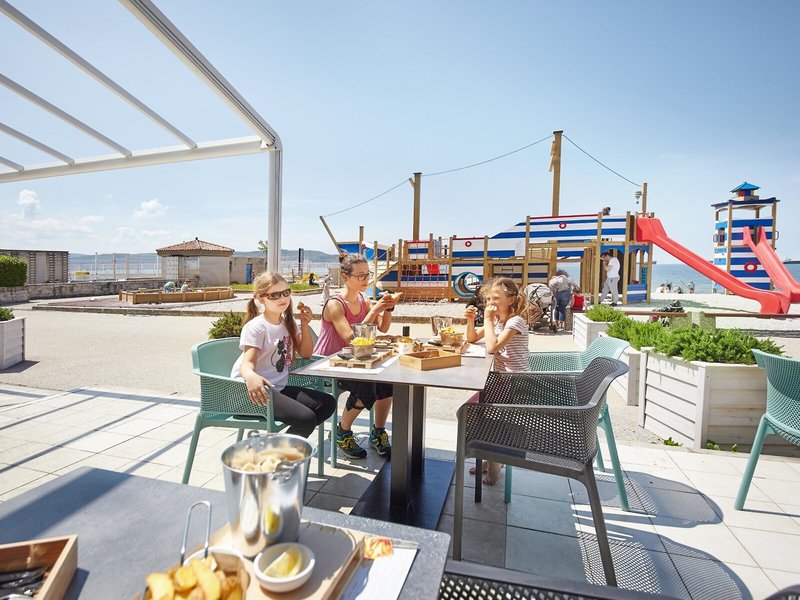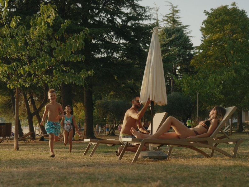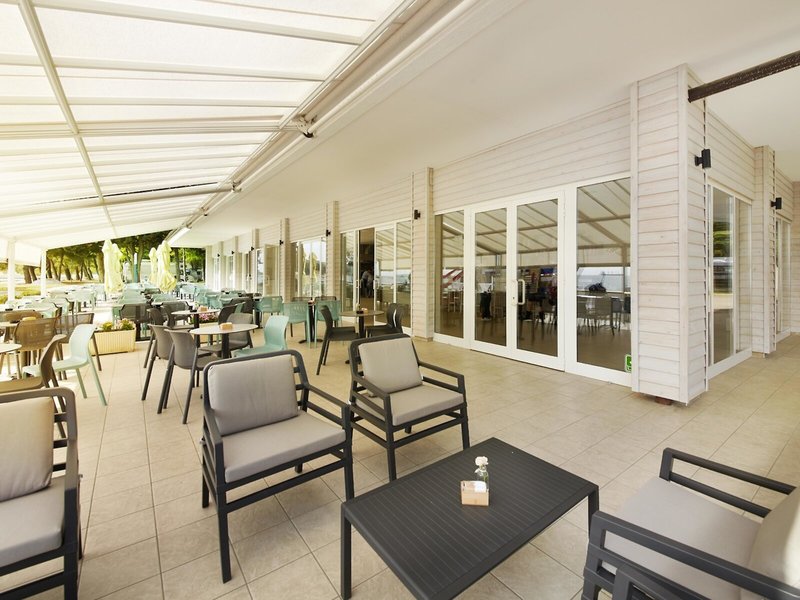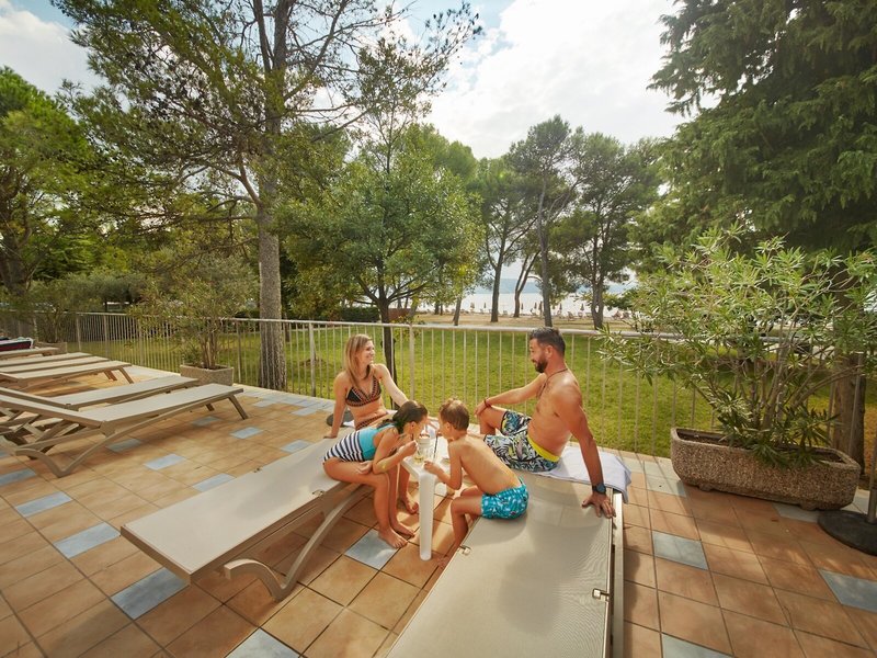 - Bazén: Vonkajší, morská voda, integrovaný detský/batoľací bazén, ležadlá: za poplatok, slnečníky: za poplatok