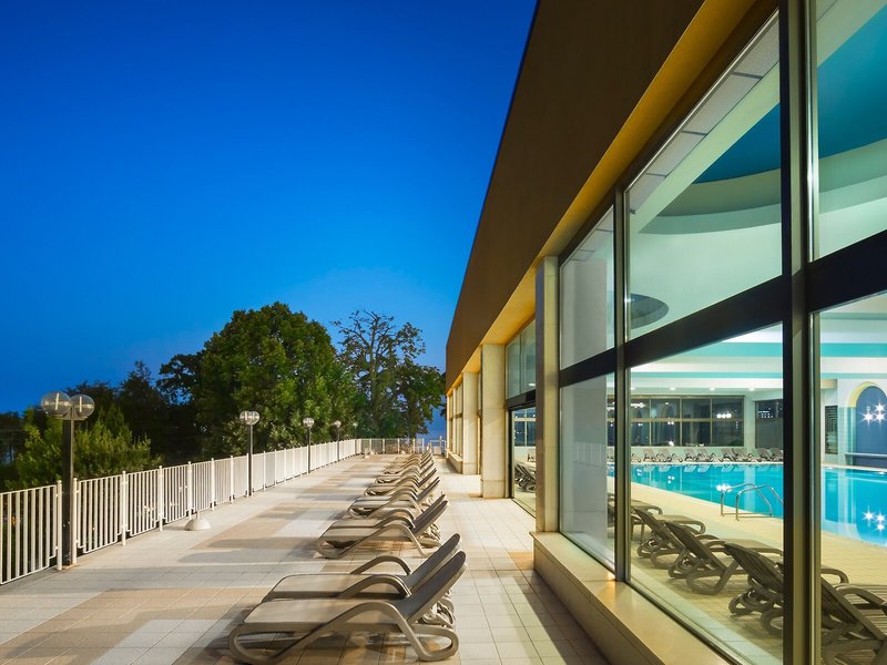 Sports & Fitness: Okrem krytých a vonkajších bazénov je k dispozícii detský plavecký areál. Čistý hlboký relax vo vírivke, zábava na tobogáne a osviežujúce nápoje v bare pri bazéne – hostia zažijú, aká rozmanitá môže byť vodná zábava. Dovolenku si môžete užiť na slnečnej terase s ležadlami a slnečníkmi. Hotel ponúka rozsiahly outdoorový športový program vrátane cyklistiky/horskej cyklistiky, tenisu, volejbalu, basketbalu, minigolfu a nordic walkingu. Pri vodnom lyžovaní, windsurfingu, plachtení, potápaní a aqua fitness si prídu na svoje aj milovníci vodných športov. Hostia si môžu vychutnať širokú škálu indoorových športov, vrátane posilňovne, stolného tenisu, biliardu, jogy a aerobiku. Hotel ponúka rôzne možnosti wellness, ako sú kúpele, sauna, parný kúpeľ, hammam, kozmetický salón, masáže a solárium. Zábavný program, miniklub, živá hudba a kasíno sa postarajú o tú najlepšiu zábavu vo voľnom čase.