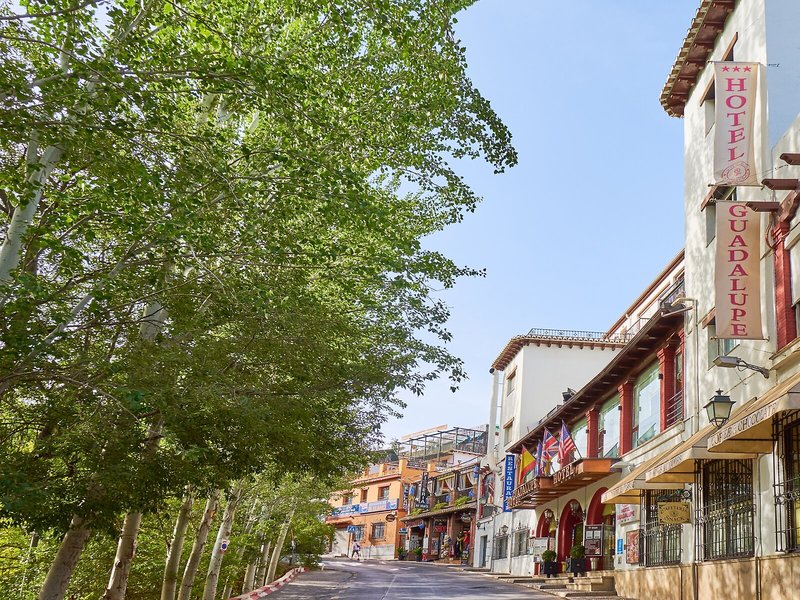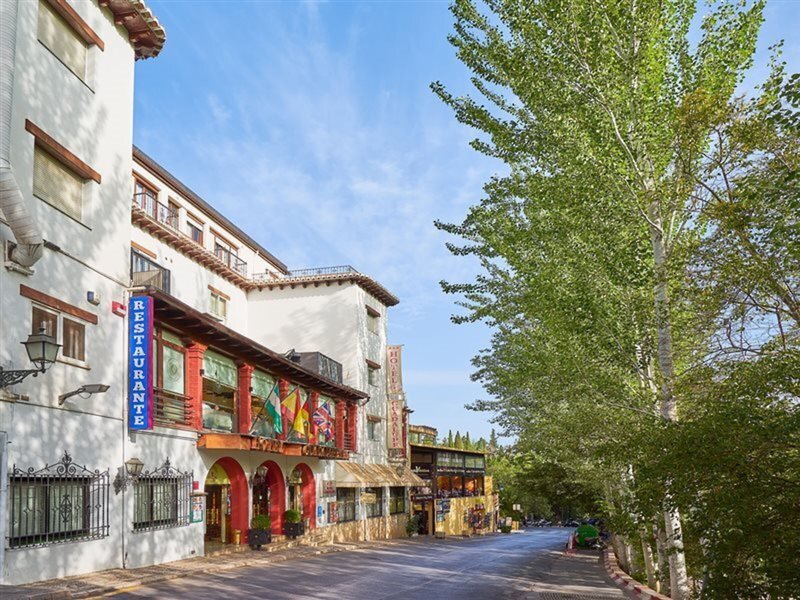 Lage & Umgebung Das im granadischen Stil erbaute Hotel befindet sich ruhig gelegen, in der Nähe der Alhambra. Eine Anbindung an öffentliche Verkehrsmittel (Bus-Shuttle ins Zentrum, circa EUR 2,- einfache Strecke) ist in 100 m bequem zu Fuß zu erreichen und in einem Umkreis von ungefähr 1 km finden Sie Einkaufsmöglichkeiten, Restaurants, Bars/Pubs und Diskotheken. Das Stadtzentrum (Kathedrale) finden Sie in ca. 1,5 km. Das Meer liegt etwa 70 km und der Flughafen Málaga ungefähr 125 km vom Hotel entfernt.