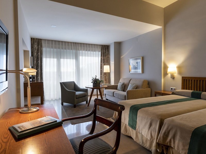 Poloha a okolie Z kopca, na ktorom sa hotel nachádza, obklopený bujnou vegetáciou, máte fantastický výhľad na mesto. Nachádza sa na úpätí pohoria Cordoba a ponúka klímu, ktorá je o 4 stupne chladnejšia a je ideálnou základňou na objavovanie mesta. Zažite atmosféru pokoja a pohody vďaka nádherným záhradám – najlepšie navštevovaným za súmraku – pri pohľade na jasne osvetlené „Mesto kalifov“. Letisko San Pablo v Seville je vzdialené približne 130 km a letisko Pabla Ruiza Picassa v Malage je vzdialené približne 225 km.