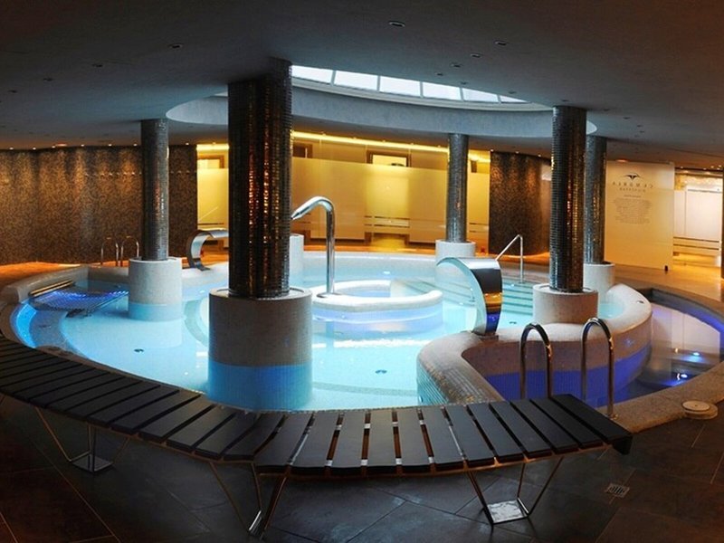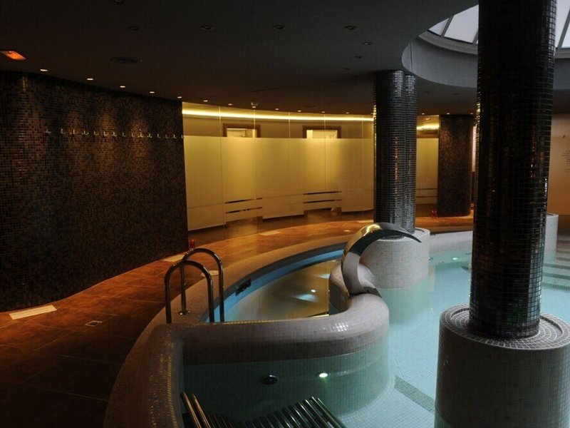 - Bazény: Vnútorný bazén, vonkajší bazén, slnečníky pri bazéne, ležadlá pri bazéne