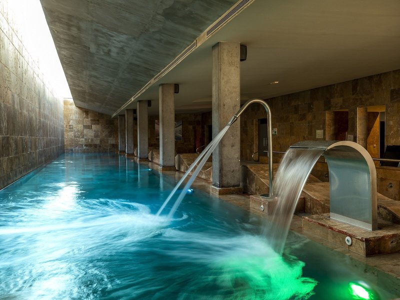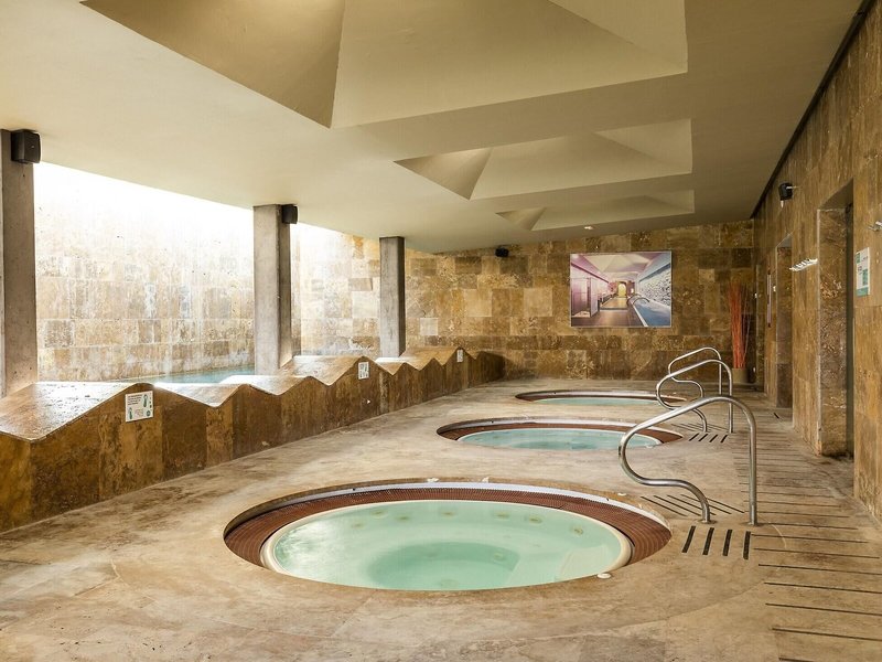 - Bazény: Vnútorný bazén, vonkajší bazén, slnečníky pri bazéne, ležadlá pri bazéne