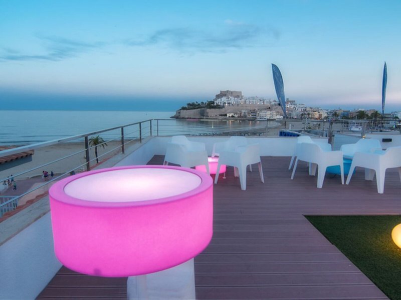 Lage & Umgebung Das Hotel liegt direkt gegenüber der grandiosen North Beach Peñiscola. Die Gäste finden Geschäfte und die mittelalterliche Burg von Papa Luna in der näheren Umgebung. Das Hotel liegt in einem der schönsten Orte an der Costa del Azahar, die malerische Altstadt und das Schloss am Meer sind beliebte Touristenziele. Freuen können sich die Gäste auf angenehme Spaziergänge entlang der kopfsteingepflasterten, von weißen Häusern gesäumten Straßen. Es gibt Restaurants und Bars im Umkreis von rund 50 m. Die nächsten Nachtlokale sind ca. 3 km entfernt. Der Flughafen Valencia ist ca. 150 km entfernt.