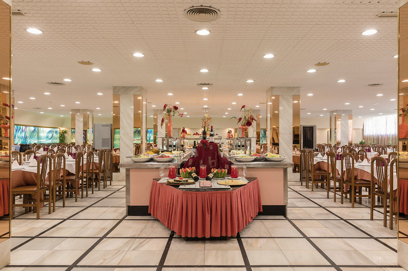 - All Inclusive: Frühstück (Buffet), Mittagessen (Buffet), Abendessen (Buffet), Getränke kostenfrei (lokale Getränke, lokale Spirituosen, 10-23 Uhr), Snacks (10:30-12 Uhr und 15:30-18 Uhr), Eis am Stiel nur für Kinder (10-18 Uhr), Zugang zu den Gemeinschaftseinrichtungen aller anderen htop Hotels und Nutzung der dortigen Restaurants (für das Mittagessen) und Snacks im Rahmen der gebuchten Verpflegung (Reservierung bis 19 Uhr am Vortag an der Rezeption des htop Royal Sun erforderlich, Zugang zum htop Amaika und htop Pineda Palace nur für Erwachsene)