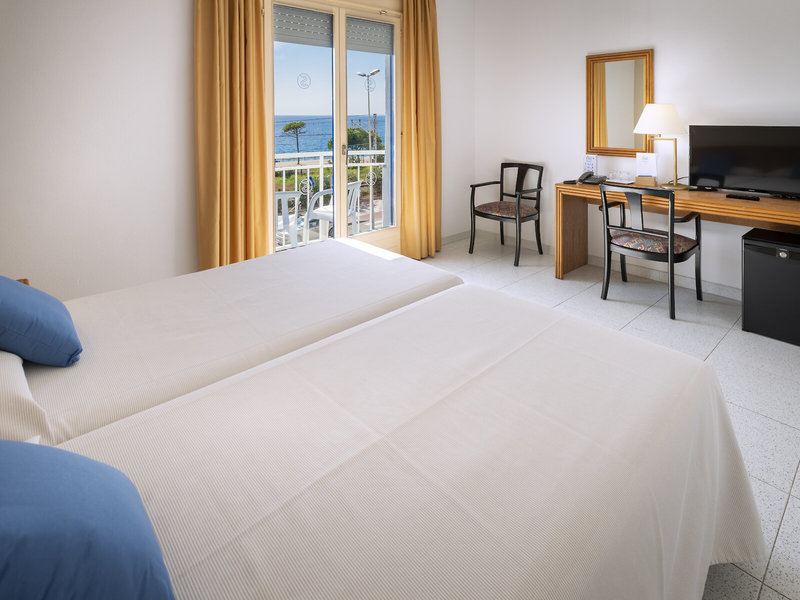 So wohnen Sie: Für angenehmes Raumklima in den Zimmern sorgen eine Klimaanlage und eine zentral steuerbare Heizung. Ein Balkon mit Meerblick in den meisten Unterkünften lädt zum Verweilen ein. Die Zimmer verfügen über ein Doppelbett und ein Sofabett. Zustellbetten können angefordert werden. Außerdem sind ein Safe und eine Minibar verfügbar. In der Kochnische befinden sich ein Kühlschrank und eine Mikrowelle. Die Ausstattung wird von einem Telefon, einem TV-Gerät, einem Radio und WiFi (gegen Gebühr) abgerundet. Im Badezimmer, ausgestattet mit einer Dusche und einer Badewanne, sind ein Haartrockner und ein Telefon vorhanden. Buchbar sind rollstuhlgerechte Zimmer. Die Unterbringung bietet Familien- und Raucherzimmer.