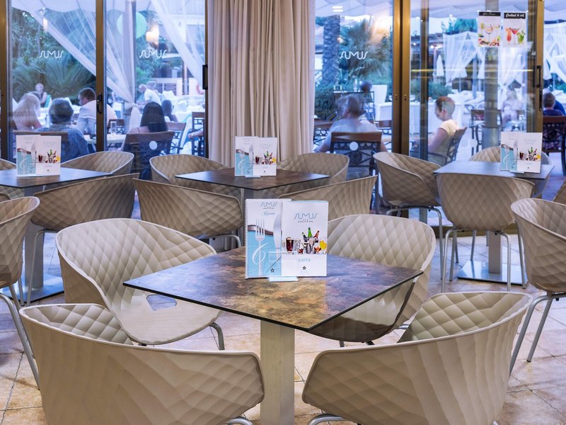 Jedlo a pitie: Hostia sa stravujú v príjemnom prostredí reštaurácie (nefajčiarska a bufet). Osviežujúce nápoje v plážovom bare sa postarajú o chvíle pohody. Na požiadanie je možné pripraviť diétne jedlá, bezlepkové jedlá a vegetariánske jedlá. Okrem toho poskytuje ubytovanie špeciálne možnosti stravovania. Špeciálnou atrakciou je show cooking.