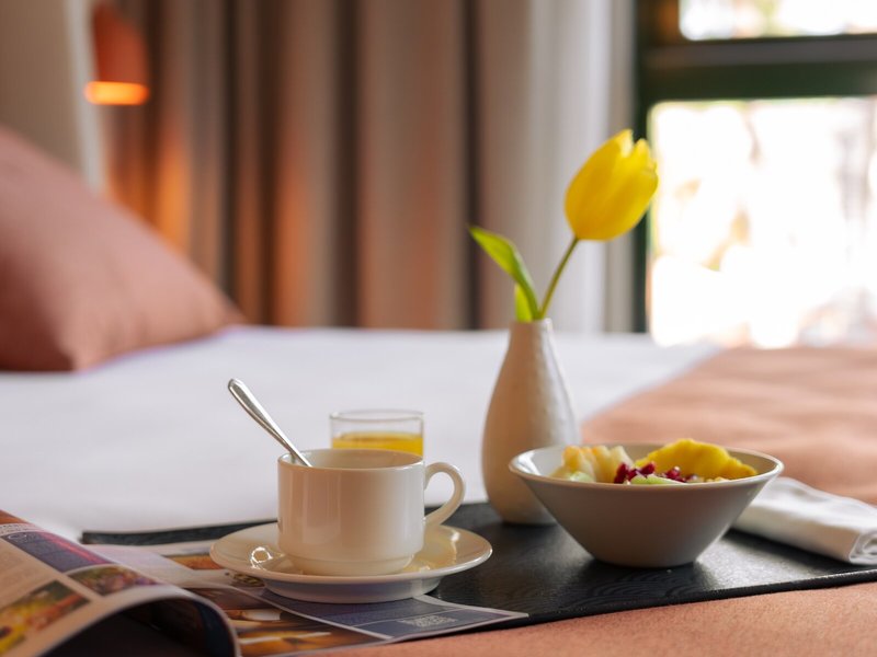 Essen & Trinken: Der gastronomische Bereich wartet mit einem Restaurant und einem Café auf. Das Haus bietet als buchbare Verpflegungsleistungen Übernachtung inkl. Frühstück und Halbpension. Ein Früh- und Langschläferfrühstück, Lunch und Abendessen locken mit abwechslungsreichem Speisenabgebot. Bei Bedarf werden auch glutenfreie Mahlzeiten zubereitet. Zusätzlich sind spezielle Verpflegungsangebote und Picknick erhältlich. Die Unterbringung führt ein Sortiment alkoholischer und alkoholfreier Getränke.