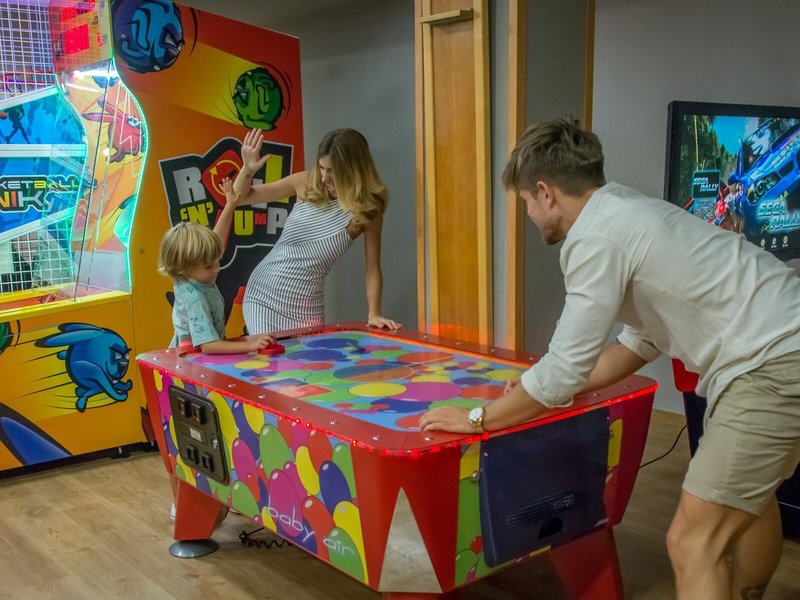 Šport a fitnes: Príjemne vyhrievaná voda v bazénovej časti so 4 vonkajšími a vnútornými bazénmi (za poplatok) zaisťuje zdravý zážitok z kúpania. Deti sa môžu vyblázniť v špeciálnej zóne na pádlovanie. Vzrušenie na tobogáne, osviežujúce nápoje v bare pri bazéne a upokojujúca svalová relaxácia vo vírivke – kúpacia zóna ponúka niečo pre každú náladu a úroveň fyzickej zdatnosti. Na slnečnej terase sú k dispozícii ležadlá a slnečníky. Pre tých, ktorí majú chuť na aktívny oddych, je k dispozícii cyklistika/horská cyklistika, minigolf a golf. Hotel ponúka rôzne vnútorné športové aktivity vrátane šípok a aerobiku, ako aj posilňovňu, stolný tenis a biliard za poplatok. Hotel ponúka wellness centrum s kúpelemi, hammamom, kozmetickým salónom a soláriom, ako aj saunu, parný kúpeľ a masáže za príplatok. Animačný program, miniklub a živá hudba zabezpečia tú najlepšiu zábavu vo voľnom čase.