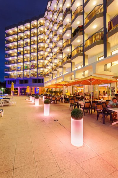 Ausstattung: Das 4-Sterne-Hotel verfügt über insgesamt 224 Zimmer. Zur Ausstattung gehören ein Empfangsbereich mit 24 h-Rezeption, Lift, Veranstaltungsraum (ca. 200 m² groß), Restaurant, Bar, Außenbereich mit großer Gartenanlage, Sonnenterrasse, Swimmingpool und überdachter Chill-out-Bereich. Liegen und Sonnenschirme stehen der Hotelgästen am Poolbereich kostenlos zur Verfügung (am Strand durch Fremdanbieter angeboten gegen Gebühr).