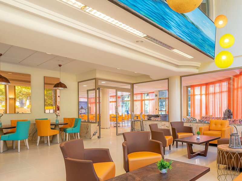 Sport & Fitness: Neben Innen- und Außenpools gibt es einen Kinderbadebereich. Erfrischende Getränke an der Pool-/Snackbar und wohlige Entspannung im Whirlpool (gegen Gebühr) bringen alle Wasserratten in die beste Stimmung. Bequeme Liegestühle und Schatten spendende Schirme stehen auf der Sonnenterrasse bereit. Wer auch auf Reisen nicht auf Sport verzichten möchte, kann sich beim Radfahren/Mountainbiking amüsieren. Minigolf wird kostenpflichtig angeboten. Zum Wassersportprogramm des Hauses gehören Windsurfen, Segeln, Katamaranfahren, Schnorcheln und Tauchen. Tischtennis und Billard sowie gegen Gebühr ein Fitnessstudio sind Teil des Sport- und Freizeitangebots. Die Unterbringung verfügt über einen Wellnessbereich mit einem Spa, einem Hammam, Massage-Anwendungen und einem Solarium sowie gegen zusätzliche Gebühr eine Sauna und ein Dampfbad. Zu den weiteren Freizeitangeboten zählen ein Animationsprogramm, ein Miniclub, Live-Musik und eine Disco.