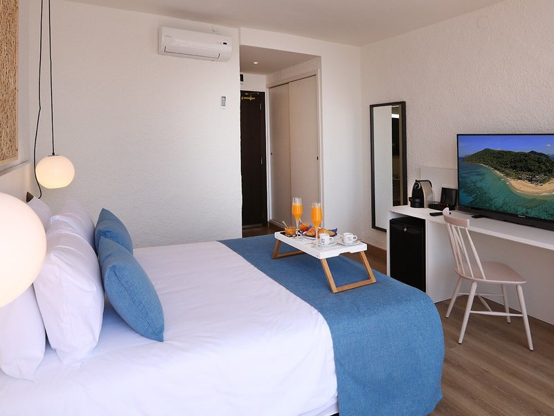 • Dvojlôžková izba, Premium Sea View (CA5), Dvojlôžková izba, výhľad na more, cca 23 - 26 m², Celkový počet izieb v tomto type izby: 1, Klimatizácia: sezónna, Trezor: zadarmo, Posedenie, Pracovný stôl, Kávovar/čajník, Telefón, Internet: WLAN/WiFi: zadarmo, TV: Plochá obrazovka, Sprcha, WC, Fén, Balkón: s posedením
