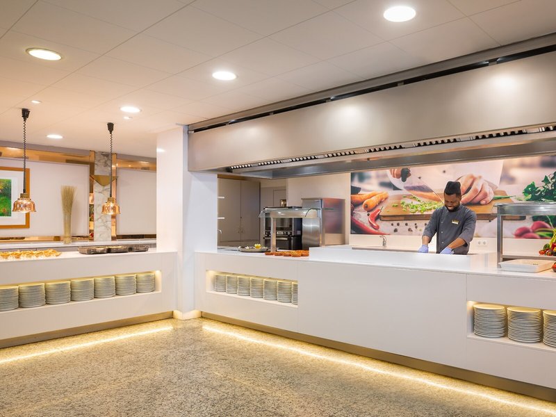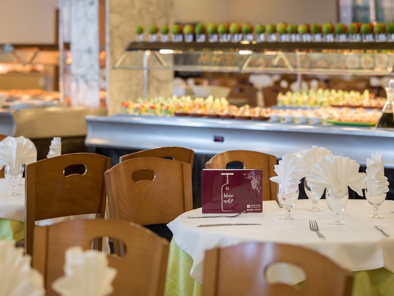 Essen & Trinken: Der gastronomische Bereich wartet mit einem Buffetrestaurant und einer Bar auf. Es sind diverse Verpflegungsleistungen buchbar. Die Gäste können zwischen Übernachtung inkl. Frühstück, Halbpension, Vollpension, All-Inclusive und All-Inclusive-Spezial wählen. Diätgerichte, glutenfreie Mahlzeiten, vegetarische Gerichte, Kindermenüs und laktosefreie Kost werden auf Wunsch zubereitet. Damit auch die Kleinsten versorgt sind, ist Babynahrung auf Anfrage erhältlich. Eine besondere Attraktion ist das Showcooking. Die Getränkekarte beinhaltet eine Vielfalt alkoholischer und alkoholfreier Getränke sowie internationale Marken.