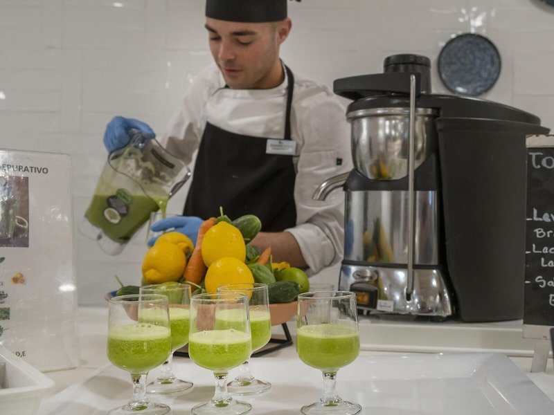 Jedlo a pitie: Možnosti stravovania zahŕňajú reštauráciu, kaviareň a bar. Hotel ponúka polpenziu, plnú penziu a all inclusive ako rezervovateľné jedlá. Raňajky, obedy a večere sú k dispozícii pre malých aj veľkých chutí. Na požiadanie sú pripravené diétne jedlá, bezlepkové jedlá a vegetariánske jedlá. Okrem toho sú k dispozícii špeciálne možnosti stravovania a občerstvenie. Špeciálnou atrakciou je show cooking. Podnik ponúka široký sortiment alkoholických a nealkoholických nápojov.