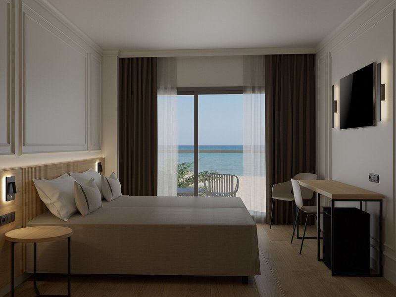 Standard Doppelzimmer (Meerblick, Terrasse): Klimaanlage (zentral gesteuert). Internet (geg. Geb.). Bad oder Dusche/WC. Balk./Terr. Max. 2E.