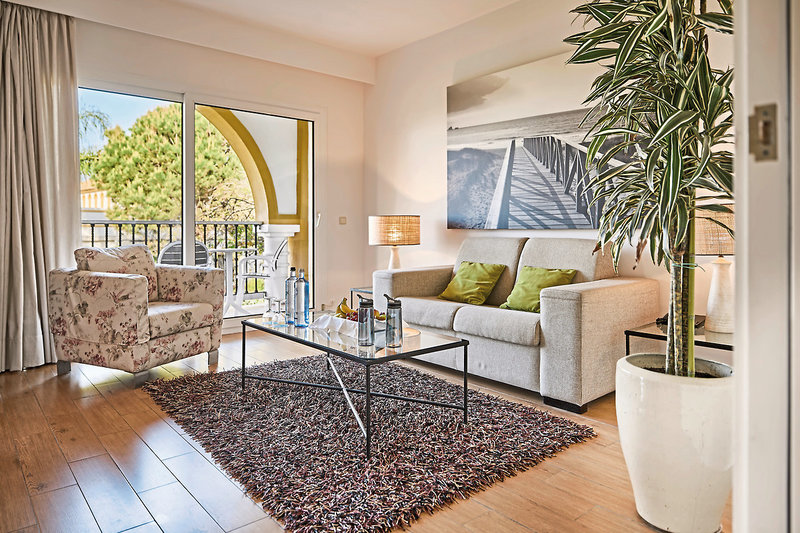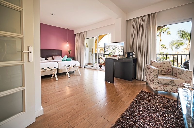 - 46-50 qm, Juniorsuite, kombinierter Wohn-/Schlafraum, Doppelbett, 1 Bad, Dusche, Bidet, WC, separates WC, Haartrockner, Kosmetikspiegel, Fliesen, Klimaanlage, Heizung, Safe, 2 TVs (Sat-TV, Flachbildschirm), WLAN, Kühlschrank, Balkon oder Terrasse (möbliert)