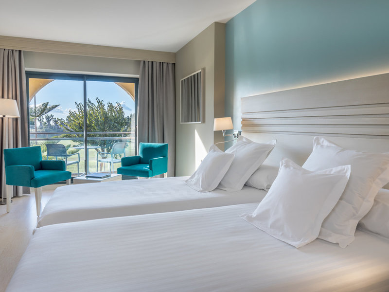 - Dvojlôžková izba typ 1 (DZX1), dvojlôžková izba, nefajčiarska izba, strana bazéna, strana golfového ihriska, výhľad na bazén, výhľad na golfové ihrisko, cca 30 - 30 m², posledná kompletná rekonštrukcia v roku 2018, posledná čiastočná rekonštrukcia v roku 2014, celk. počet izieb v tomto type izby: 1, dispozičné riešenie: spojená obývačka Spálňa, 2 samostatné postele (105x200cm), klimatizácia, kúrenie, podlaha: dlažba, trezor: cca 3,00 EUR, písací stôl, minibar: pre za poplatok, telefón, Internet: WLAN/WiFi: bez poplatku, TV: plochá obrazovka, v spálni, nemecký program, Izbová služba: za poplatok, upratovacia služba, vaňa, fén, kozmetické zrkadlo, balkón alebo terasa: s posedením