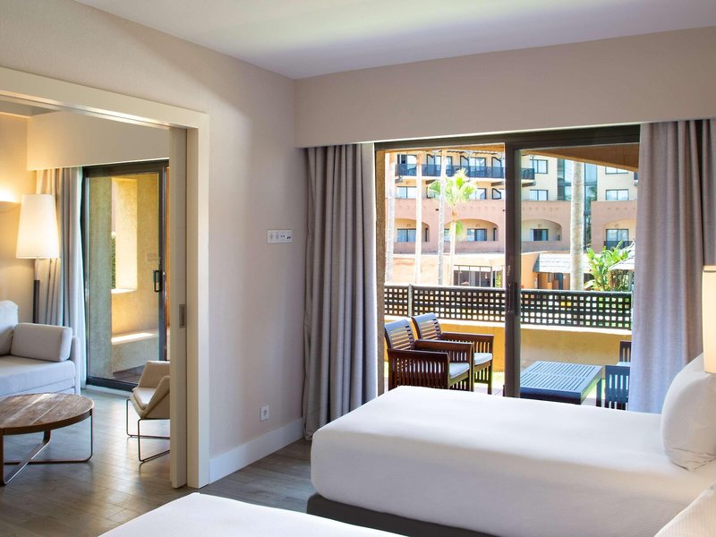 So wohnen Sie: Für angenehmes Raumklima in den Zimmern sorgen eine Klimaanlage und eine Heizung. In den meisten Zimmern ist ein Balkon oder eine Terrasse vorhanden. Die mit Teppichböden ausgestatteten Zimmer verfügen über ein Doppelbett, ein Kingsize-Bett oder ein Sofabett. Es gibt separate Schlafzimmer. Zustellbetten können angefordert werden. Außerdem sind ein Safe, eine Minibar und ein Schreibtisch verfügbar. Eine Tee-/Kaffeemaschine zählt ebenfalls zur Standardeinrichtung. Ein Bügelset ist für den zusätzlichen Komfort der Gäste verfügbar. Darüber hinaus sind ein Telefon mit Direktwahl, ein TV-Gerät mit Satelliten-/Kabelempfang und WiFi (ohne Gebühr) vorhanden. Zu den Vorzügen der Zimmer gehören Hausschuhe. Die Badezimmer sind ausgestattet mit einer Dusche, einer Badewanne und einer Whirlwanne. Ein Haartrockner, Bademäntel und ein Telefon stehen für den Gebrauch zur Verfügung. Für besonderen Komfort in den Badezimmern sorgen Kosmetikartikel. Buchbar sind rollstuhlgerechte Zimmer. Die Unterbringung bietet Familien- und Nichtraucherzimmer.