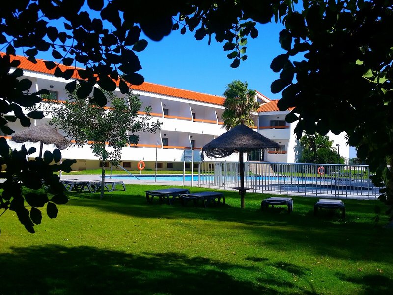 Poloha a okolie Tento atraktívny plážový hotel je vzdialený cca 1 km od pláže a centra mesta. V okolí nájdete množstvo nákupných možností a reštaurácií. Zastávka verejnej dopravy je vzdialená približne 1 km. Letisko Jerez de la Frontera je vzdialené približne 55 km.