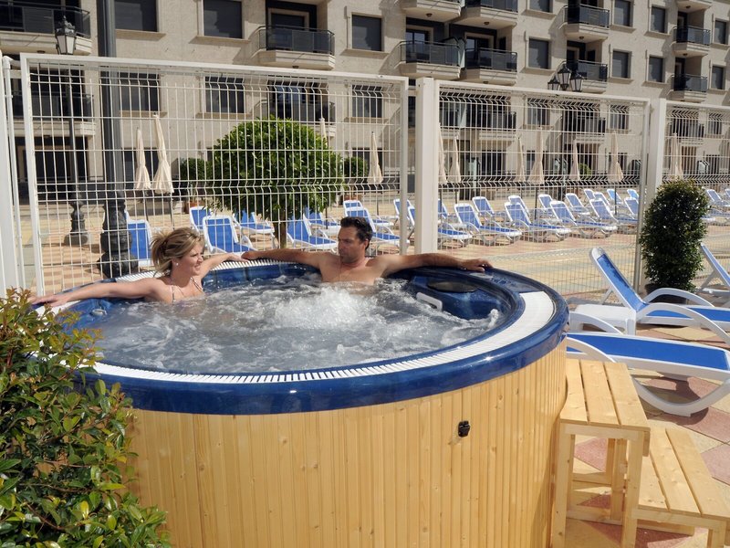Ausstattung: 2 Pools, Kinderpool. Liegen, Schirme am Pool (geg. Geb.), Pool-/Snackbar, Sonnenterrasse. Rezeption, Safe (geg. Geb.), TV-Lounge. Restaurant, 2 Bars, Parkplatz (geg. Geb.). 200 Zimmer, 8 Etagen, 15 Lifte.