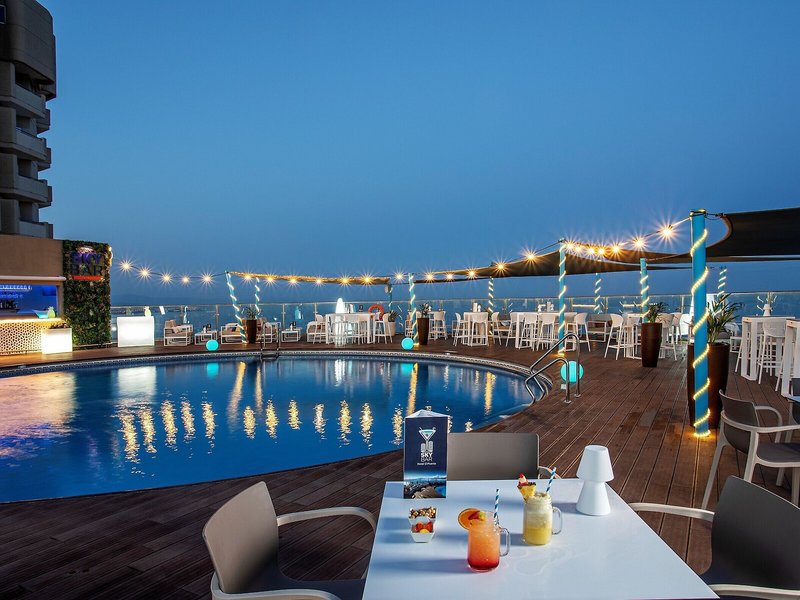 Ausstattung: Poollandschaft mit Pool. Snackbar, Sonnen-, Dachterrasse. Empfangshalle, Rezeption, Safe (geg. Geb.), Lounge. Restaurant, 2 Bars, Cafeteria, Shop. 300 Zimmer, 16 Etagen, 1 Nebengebäude, 3 Lifte.