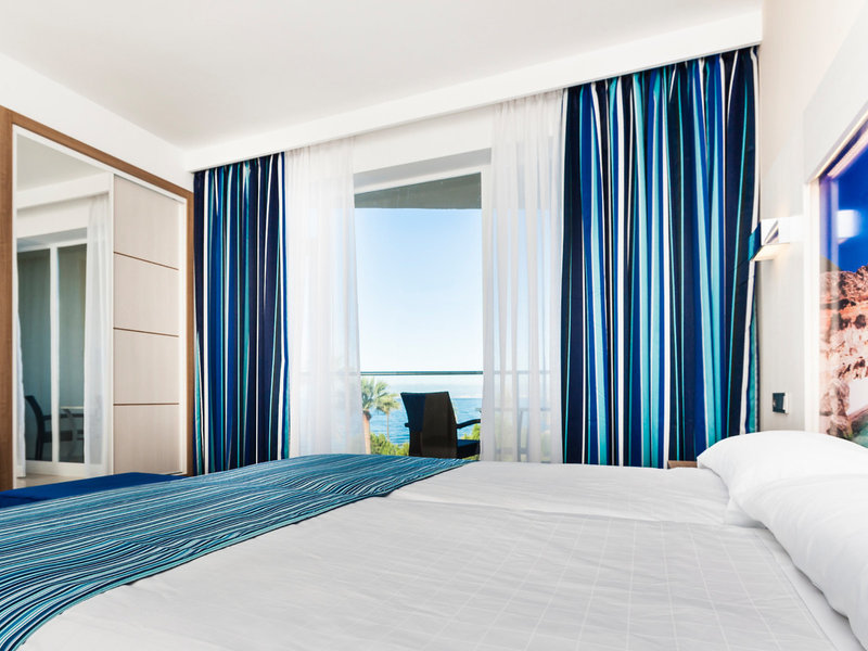 - Junior suita typu (JSX2), junior suita, v prístavbe, výhľad na bazén, cca 30 - 35 m², posledná kompletná rekonštrukcia v roku 2015, celkový počet izieb v tomto type izby: 2, rozloženie: kombinovaná obývacia izba/spálňa, pozostáva z z 2 izieb, opticky oddelené bez dverí alebo cez záves, 2 samostatné postele, 1 manželská posteľ, 1 rozkladacia pohovka, klimatizácia: centrálne ovládaná, podlaha: dlažba, trezor: za poplatok, chladnička, telefón, Internet: WLAN /WiFi: zdarma, TV: plochá obrazovka, satelitná TV, Upratovacia služba: denne, vaňa alebo sprcha, WC, fén, balkón alebo terasa: s posedením
