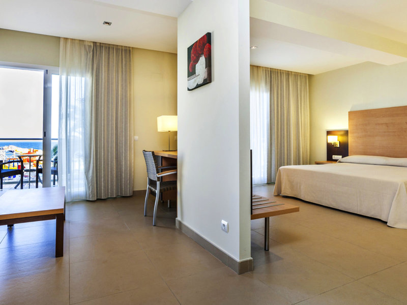 - Juniorsuite Typ (JSX2), Juniorsuite, im Nebengebäude, Poolblick, ca. 30 - 35 m², letzte Komplettrenovierung 2015, Gesamtanzahl der Räume in diesem Zimmertyp: 2, Aufteilung wie folgt: kombiniertes Wohn-/Schlafzimmer, bestehend aus 2 Zimmern, optisch getrennt ohne Tür oder durch Vorhang, 2 Einzelbetten, 1 Doppelbett, 1 Schlafsofa, Klimaanlage: zentral gesteuert, Fußboden: Fliesenboden, Safe: gegen Gebühr, Kühlschrank, Telefon, Internet: WLAN/WiFi: ohne Gebühr, Fernseher: Flatscreen, Sat-TV, Reinigungsservice: täglich, Badewanne oder Dusche, WC, Föhn, Balkon oder Terrasse: mit Sitzgelegenheit