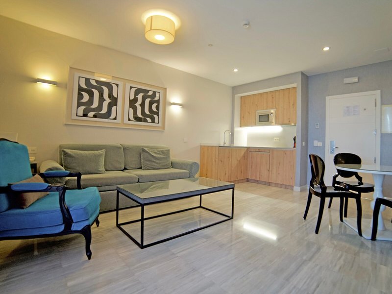 So wohnen Sie: In den Zimmern gibt es eine Klimaanlage und eine Heizung. Die Gäste können den Meerblick von Balkon oder Terrasse genießen. Die Zimmer verfügen über ein Doppelbett. Es sind separate Schlafzimmer vorhanden. Kinderbetten für die jüngsten Gäste sind ebenso vorhanden. Es gibt einen Schreibtisch. Eine Tee-/Kaffeemaschine zählt ebenfalls zur Standardeinrichtung. Hinzu kommen ein Bügelset und eine Hosenpresse. Für optimalen Komfort sorgen ein Flachbildschirmfernseher, ein Radio und WiFi. Die Badezimmer sind ausgestattet mit einer Dusche, einer Badewanne und einer Whirlwanne. Des Weiteren ist ein Haartrockner vorhanden. Für besonderen Komfort in den Badezimmern sorgen Kosmetikartikel. Buchbar sind rollstuhlgerechte Zimmer. Das Apartmenthotel bietet Familien- und 28 Nichtraucherzimmer.