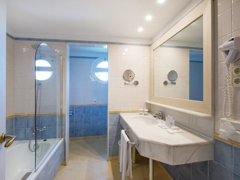 - Suita Senior (SUX1), Suita, v hlavnej budove, morská strana, výhľad na more, výhľad na bazén, cca 45 m², posledná čiastočná rekonštrukcia v roku 2017, celkový počet izieb v tomto type izby: 2, rozloženie: kombinovaná obývačka/spálňa, 1 spálňa, 2 samostatné postele, 1 rozkladacia pohovka, detská postieľka: bezplatne, podlaha: na vyžiadanie a rezervácia nutná, klimatizácia: centrálna poschodie, trezor, klimatizácia: centrálna klimatizácia, trezor. minibar: za poplatok, telefón, internet: WLAN/WiFi: zadarmo, TV: plochá obrazovka, satelitná TV, upratovanie: denne, vaňa alebo sprcha, WC, fén, balkón alebo terasa: s ležadlami, terasa: s posedením