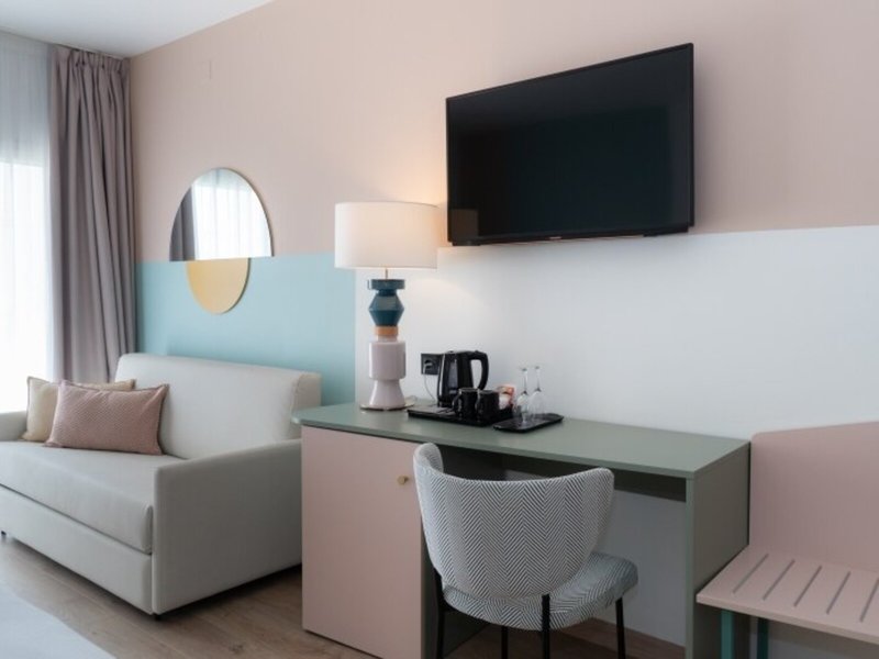 So wohnen Sie: Für angenehmes Raumklima in den Zimmern sorgen eine Klimaanlage und eine Heizung. In den meisten Unterkünften genießen die Gäste von Balkon oder Terrasse einen Ausblick auf das Meer. Die Zimmer verfügen über ein Doppelbett und ein Sofabett. Zustellbetten können angefordert werden. Außerdem sind ein Safe, eine Minibar und ein Schreibtisch verfügbar. Eine Tee-/Kaffeemaschine zählt ebenfalls zur Standardeinrichtung. Besten Urlaubskomfort bieten ein Telefon mit Direktwahl, Sat-TV, ein Wecker und WiFi. Die Badezimmer sind ausgestattet mit einer Dusche, einer Badewanne und einer Whirlwanne. Für den täglichen Gebrauch stehen ein Haartrockner und ein Kosmetikspiegel zur Verfügung. Als Besonderheit genießen die Gäste in den Badezimmern Kosmetikartikel und eine Auswahl an Handtüchern. Buchbar sind rollstuhlgerechte Zimmer. Für Eltern mit Kindern stehen Familienzimmer zur Verfügung.
