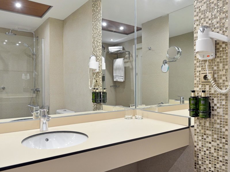 - Double deluxe sea view (DZM1), Doppelzimmer, Nichtraucherzimmer, Meerseite, Meerblick, ca. 30 m², Gesamtanzahl der Räume in diesem Zimmertyp: 1, Aufteilung wie folgt: 1 Schlafzimmer, 2 Einzelbetten, 1 King Size Bett, Klimaanlage: ohne Gebühr, saisonabhängig, Heizung: saisonabhängig, Fußboden: Laminat, Safe: ohne Gebühr, Schreibtisch, Kaffee-/Teezubereiter, Wasserkocher, Minibar: gegen Gebühr, Telefon, Internet: WLAN/WiFi: ohne Gebühr, Fernseher: Flatscreen, Sat-TV, Roomservice: 07:30 Uhr - 23:00 Uhr, gegen Gebühr, Dusche, WC, Föhn, Kosmetikspiegel, Balkon oder Terrasse: mit Sitzgelegenheit