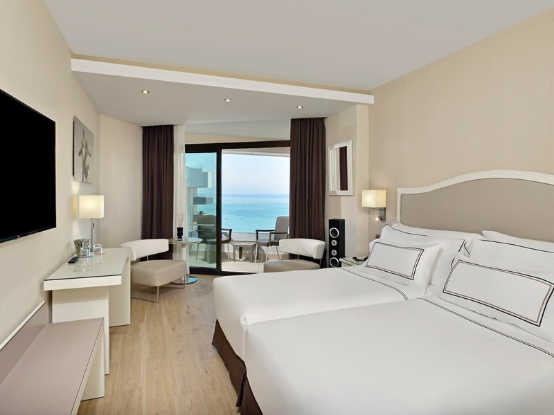 - Double Melia sea view (DZM2), Doppelzimmer, Nichtraucherzimmer, Meerseite, Meerblick, ca. 30 m², Gesamtanzahl der Räume in diesem Zimmertyp: 1, Aufteilung wie folgt: 1 Schlafzimmer, 2 Einzelbetten, 1 King Size Bett, Klimaanlage: ohne Gebühr, saisonabhängig, Heizung: saisonabhängig, Fußboden: Laminat, Safe: ohne Gebühr, Schreibtisch, Kaffee-/Teezubereiter, Wasserkocher, Minibar: gegen Gebühr, Telefon, Internet: WLAN/WiFi: ohne Gebühr, Fernseher: Flatscreen, Sat-TV, Roomservice: 07:30 Uhr - 23:00 Uhr, gegen Gebühr, Dusche, WC, Föhn, Kosmetikspiegel, Terrasse: mit Sitzgelegenheit