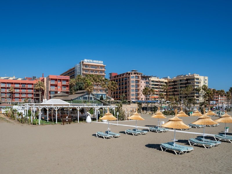 Poloha a okolie: Hotel MS Amaragua sa nachádza priamo na plážovej promenáde v tradičnej rybárskej štvrti La Carihuela v Torremolinos, jednom z najobľúbenejších letovísk na pobreží Costa del Sol. Od jemnej piesočnatej pláže a Stredozemného mora vás delí len promenáda, zatiaľ čo všade okolo nájdete autentické chiringuitos (plážové bary) a reštaurácie, ktoré podávajú andalúzsku kuchyňu. Jachtársky prístav Puerto Marina v Benalmádene je vzdialený približne 2 km a centrum Malagy s historickým starým mestom je vzdialené asi 15 km. Poloha je ideálna pre tých, ktorí ocenia blízkosť pláže, južanský španielsky životný štýl a ľahký prístup k atrakciám Costa del Sol.