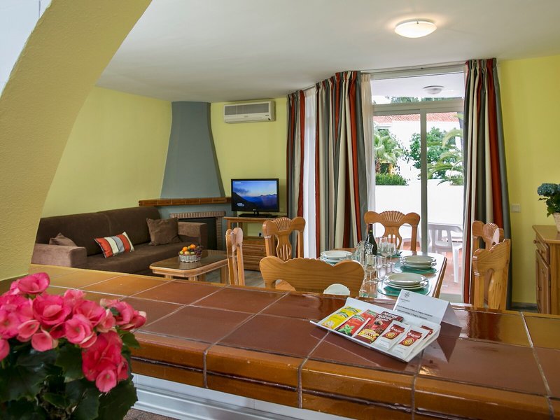 So wohnen Sie: Für angenehmes Raumklima in den Zimmern sorgen eine Klimaanlage und eine Heizung. Die Gäste können den Gartenblick von Balkon oder Terrasse genießen. Die Zimmer verfügen über ein Doppelbett und ein Sofabett. Es sind separate Schlafzimmer vorhanden. Zustellbetten können angefordert werden. Den besten Schutz für das Eigentum der Gäste bietet ein Safe. Die Kochnische ist mit einem Kühlschrank, einem Herd, einer Mikrowelle, einer Tee-/Kaffeemaschine und einem Geschirrspüler gut für Selbstversorger ausgestattet. Hinzu kommen eine Waschmaschine und ein Bügelset. Darüber hinaus sind ein Telefon mit Direktwahl, ein TV-Gerät mit Satelliten-/Kabelempfang und WiFi vorhanden. Im Badezimmer, mit einer Dusche und einer Badewanne ausgestattet, stehen für die Gäste ein Haartrockner und ein Telefon bereit. Außerdem sind barrierefreie Badezimmer buchbar. Das Hotel bietet Familien- und Nichtraucherzimmer.