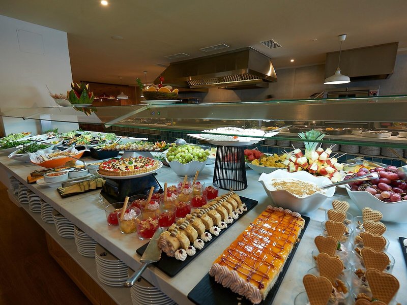 Essen & Trinken: Die gastronomischen Einrichtungen umfassen ein Restaurant, ein Café und eine Bar. Das Haus bietet als buchbare Verpflegungsleistungen Halbpension, Vollpension und All-Inclusive. Ein reichhaltiges Frühstücksbuffet, Mittagessen und ein vielfältiges Abendbuffet sind lecker und abwechslungsreich gestaltet. Glutenfreie Mahlzeiten, vegetarische Gerichte und Kindermenüs werden auf Wunsch zubereitet. Darüber hinaus stellt das Hotel Snacks bereit. Eine besondere Attraktion ist das Showcooking. Die Unterbringung führt ein Sortiment alkoholischer und alkoholfreier Getränke.