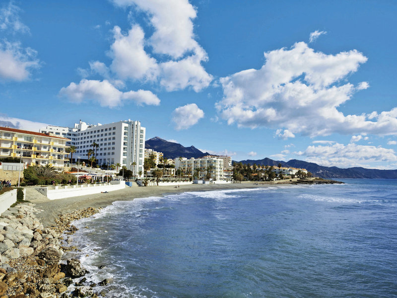 Poloha a okolie: Priamo na pobreží a oddelené iba promenádou od pláže s hrubým pieskom Playa de la Torrecilla. Centrum Nerja je vzdialené približne 800 m, s reštauráciami a tapas barmi v bezprostrednej blízkosti. Autobusová zastávka cca 50 m.