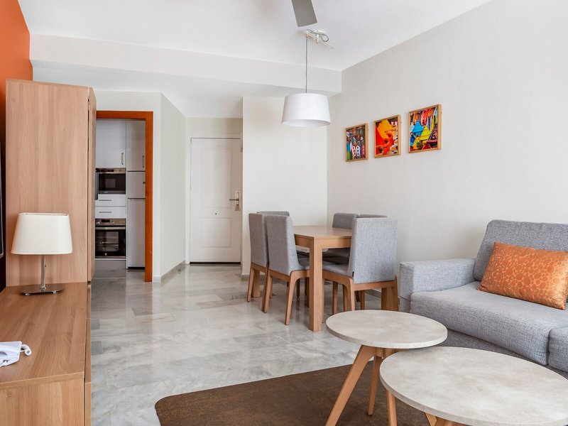 Vaše ubytovanie: Klimatizácia a kúrenie zabezpečujú príjemnú vnútornú klímu v izbách. Väčšina izieb má balkón alebo terasu. Izby majú manželskú posteľ a rozkladaciu pohovku. K dispozícii sú samostatné spálne. Prístelky je možné vyžiadať. K dispozícii je aj trezor a písací stôl. Kuchynka je dobre vybavená na vlastné varenie a má chladničku, sporák, mikrovlnnú rúru, príslušenstvo na prípravu kávy/čaju a rúru. K dispozícii je aj práčka a žehliaca súprava. Telefón, televízor, rádio, DVD prehrávač, budík a WiFi poskytujú najlepší komfort počas dovolenky. Kúpeľňa je vybavená sprchovacím kútom a vaňou, sušičom vlasov a telefónom. Ako špeciálne vybavenie si hostia môžu vychutnať kozmetické produkty a výber uterákov v kúpeľniach. Je možné si rezervovať izby prístupné pre vozíčkarov. Apartmánový hotel ponúka rodinné, nefajčiarske a fajčiarske izby.