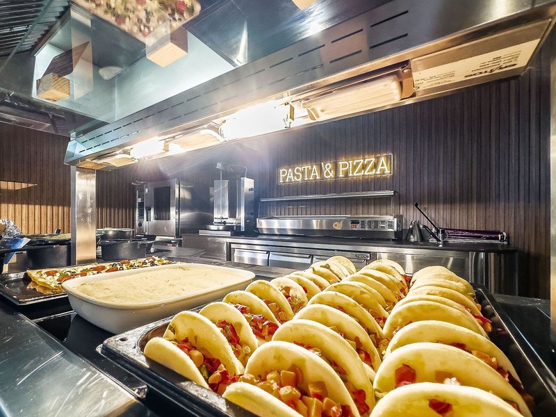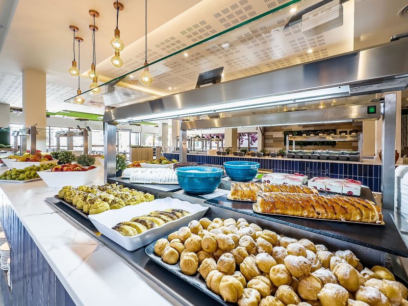 Jedlo a nápoje: Hostia si môžu vychutnať kulinárske špeciality v reštaurácii (bufet, klimatizovaná a s detskými stoličkami). Polpenzia je ponúkaná ako voliteľný stravovací plán. Na raňajky a večeru sa podáva pestrý bufet. Na požiadanie sú k dispozícii bezlepkové, bezlaktózové a vegánske jedlá. Alkoholické a nealkoholické nápoje sú k dispozícii za príplatok.