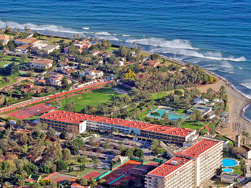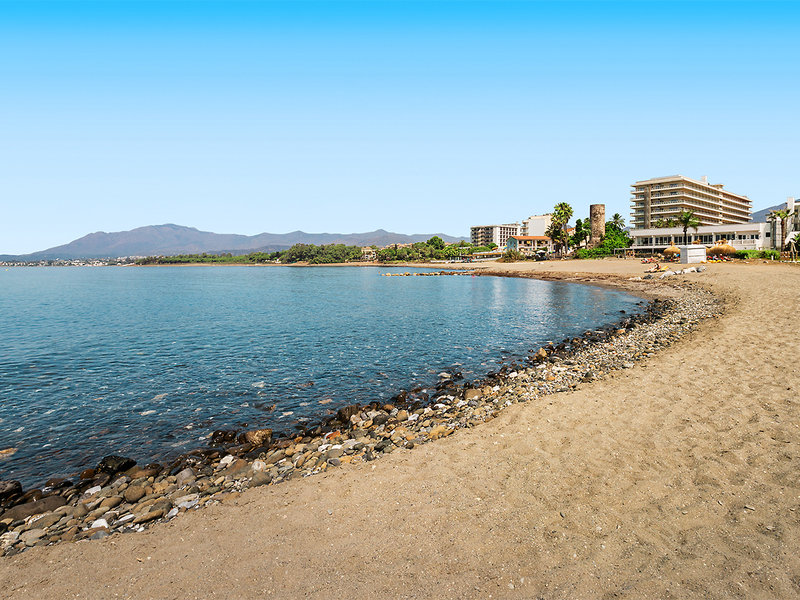 Poloha: Priamo na piesočnatej a kamienkovej pláži medzi Marbellou a Esteponou. Pláž sa pri prílive stáva skalnatou, preto sa odporúča vodná obuv. Pláž Puerto Banus je vzdialená približne 6 km. Dve 18-jamkové golfové ihriská Atalaya sú vzdialené približne 4 km.