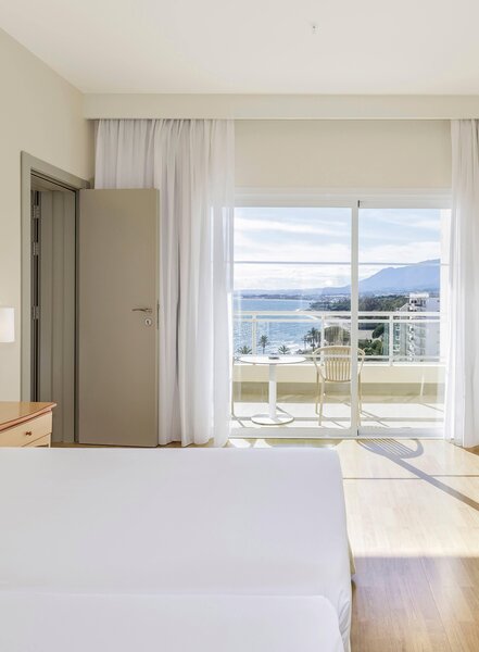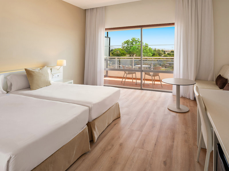 Wohnen: Doppelzimmer (DZ, ca. 25 qm), Klimaanlage, Minibar (gegen Gebühr), TV, Telefon, WLAN, Mietsafe. Dusche, WC, Föhn. Balkon/Terrasse, wahlweise Meerblick (DZM). Max. 3E, zur Alleinnutzung buchbar (EZ/EZM)