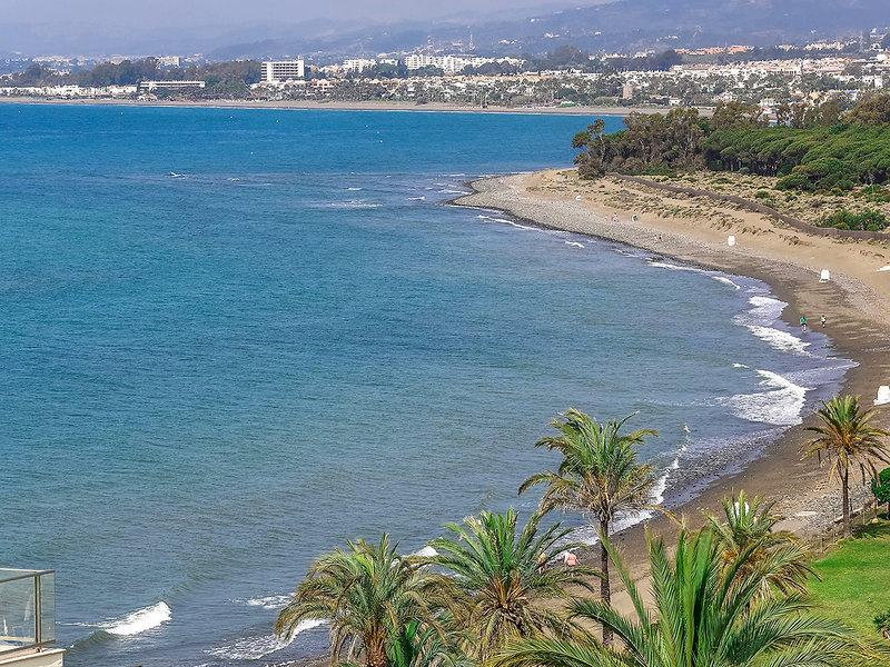 Lage: Direkt am Sand- und Kiesstrand zwischen Marbella und Estepona. Am Flutsaum wird der Strand steinig, Badeschuhe sind empfehlenswert. Bis zum Strand von Puerto Banus sind es ca. 6 km. Die 2 Atalaya 18-Loch-Golfplätze erreicht man in ca. 4 km.