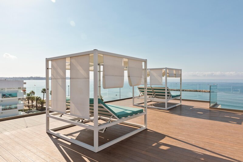 Standard Doppelzimmer (Balkon o. Terrasse, teilweise Meerblick): Minikühlschrank (geg. Geb.). Wasserkocher, Handtücher. TV, Telefon, Internet (geg. Geb.), Safe (geg. Geb.). Bad oder Dusche/WC, Föhn. Balk./Terr. Max. 3E.